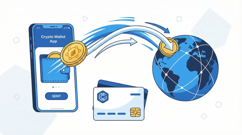 暗号資産取引所や関連サービスが発行するプリペイドカードに、保有している暗号資産をチャージすることで、MastercardやVisa加盟店での支払いが可能になります。これにより、暗号資産決済に直接対応していないコンビニやスーパーでも、間接的に暗号資産を使って買い物ができます。