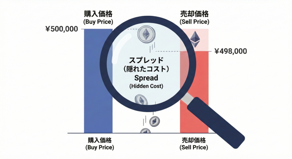 投資におけるコストは、目に見える「取引手数料」だけではありません。実は、多くの初心者が気づかずに支払っている見えないコストとして「スプレッド」が存在します。これは購入価格と売却価格の差額であり、実質的な手数料として機能します。