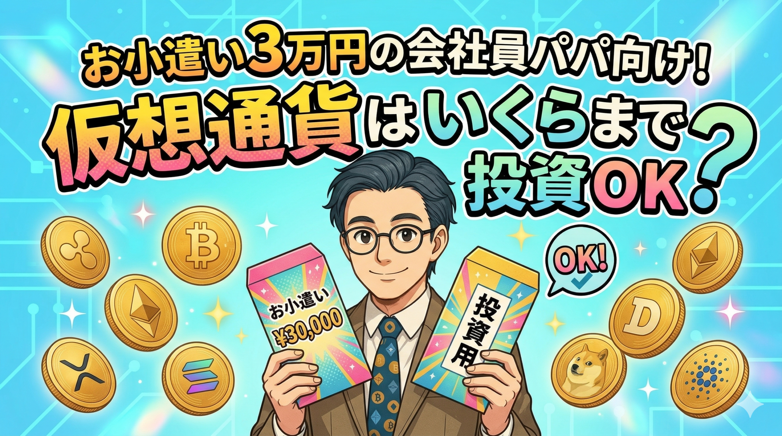 今月のお小遣いが3万円だと、日々のランチ代やコーヒー代だけであっという間になくなりますよね。それでも将来への不安から、暗号資産への投資に興味をもつパパは多いはずです。